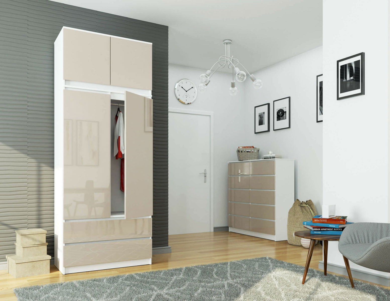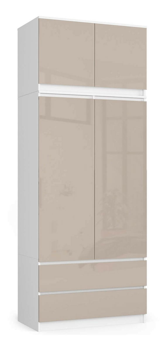 Dulap de haine Submarino (alb + cappuccino lucios) (cu suprastructură)