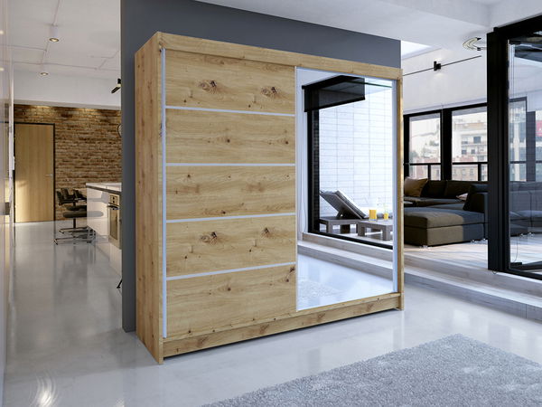 Placa laminată are grosime de 16 mm Sistemul ușilor este glisant Ghidaje din aluminiu Sevroll Mâner sub formă de bară de aluminiu de-a lungul ușii Mânerele din aluminiu împiedică îndoirea ușii > În colete veți găsi toate cele accesorile pentru asamblare și instrucțiunile de asamblare.