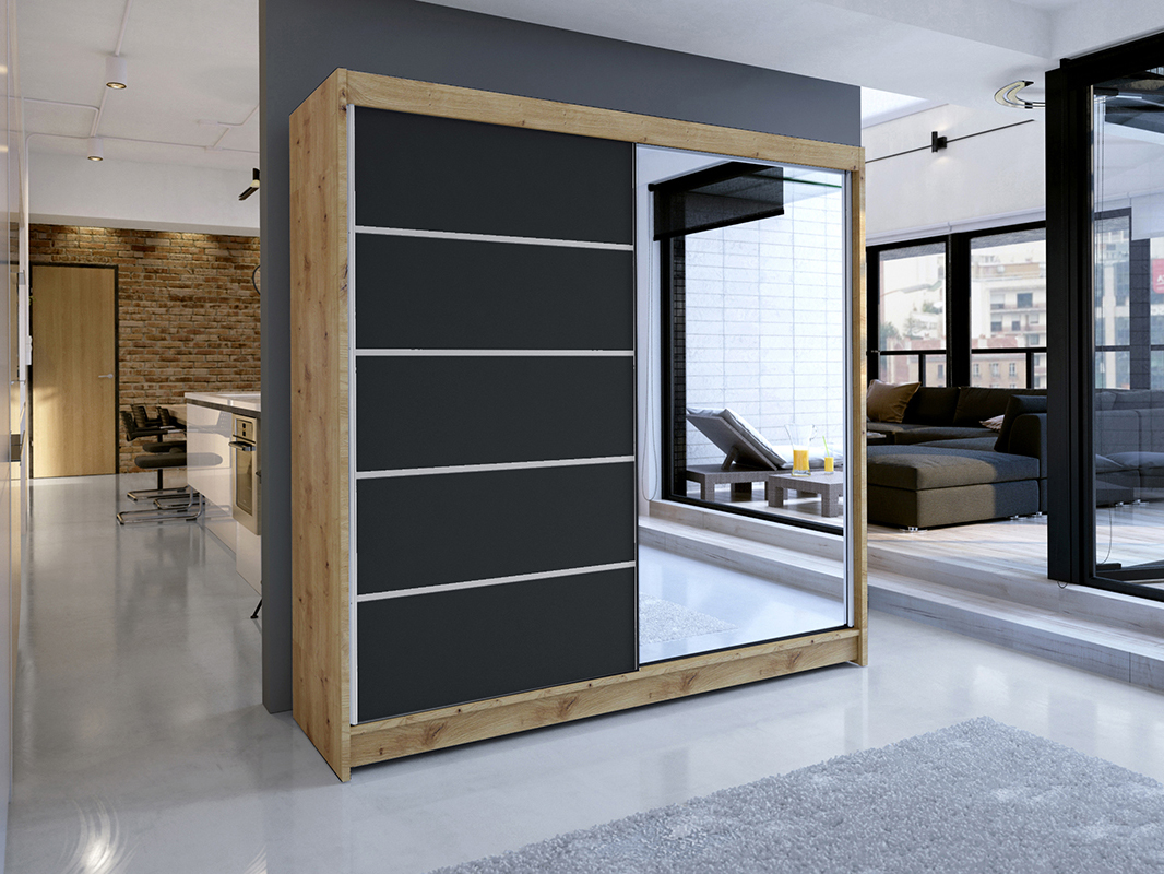 Placa laminată are grosime de 16 mm Sistemul ușilor este glisant Ghidaje din aluminiu Sevroll Mâner sub formă de bară de aluminiu de-a lungul ușii Mânerele din aluminiu împiedică îndoirea ușii > În colete veți găsi toate cele accesorile pentru asamblare și instrucțiunile de asamblare.
