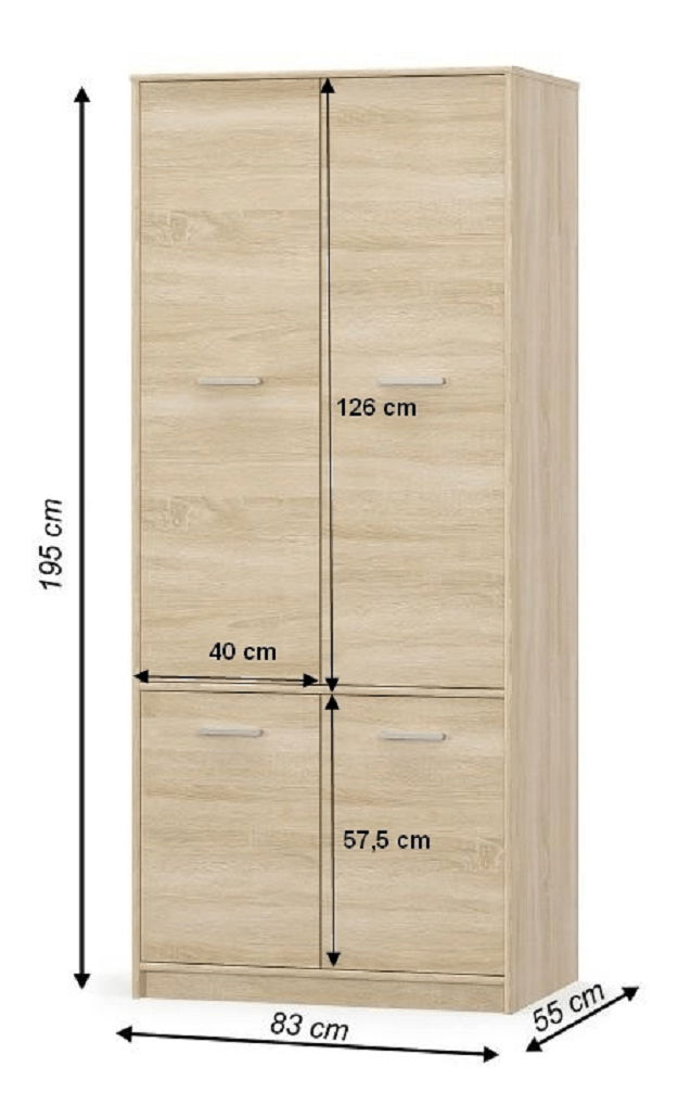 Dulap de haine cu desing modern care oferă suficient spațiu de depozitare. Se livrează pe versiunea color de stejar sonoma. Conține bară pentru umerașe și un raft.
