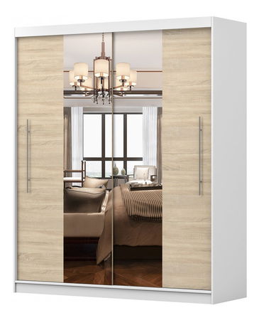 Dulap de haine Thovan (alb + stejar sonoma + Oglindă)