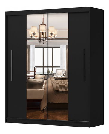 Dulap de haine Thovan (negru + negru + Oglindă)