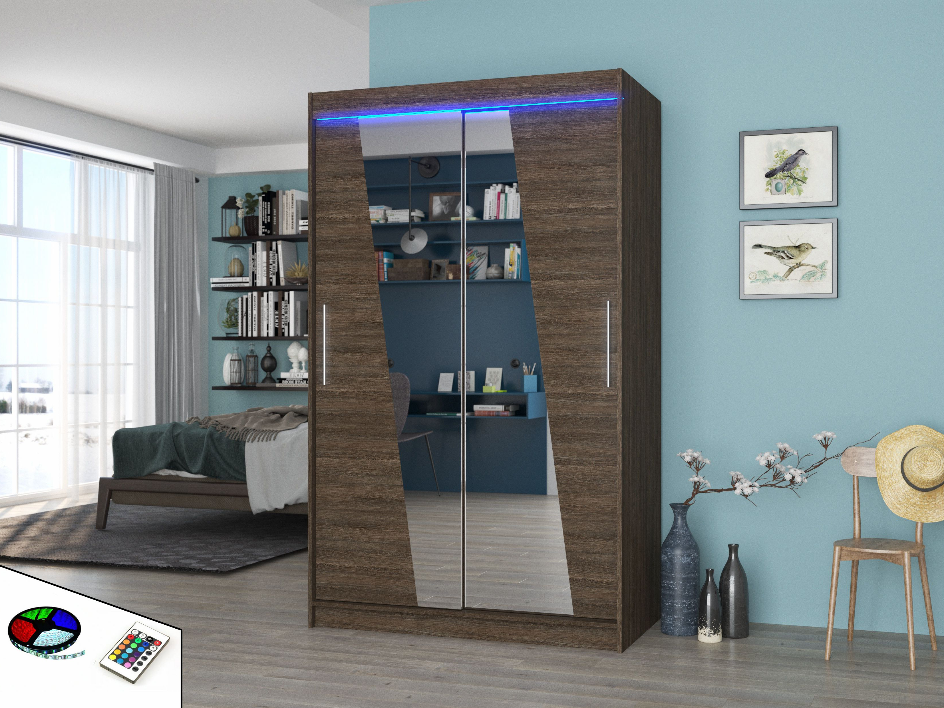 Dulap de haine Tolex (choco) (cu iluminat LED) (cu oglindă)