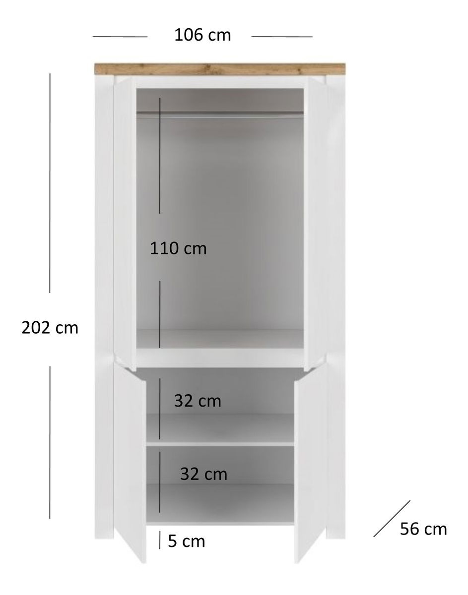 Dulap de haine Vina (alb lucios + Stejar wotan)