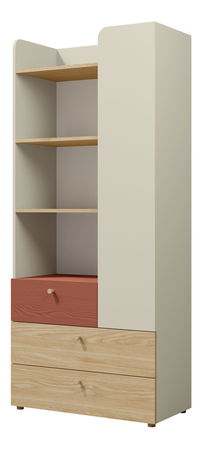 Dulap de haine Yoda 3 (bej deschis + stejar uleios + coral)
