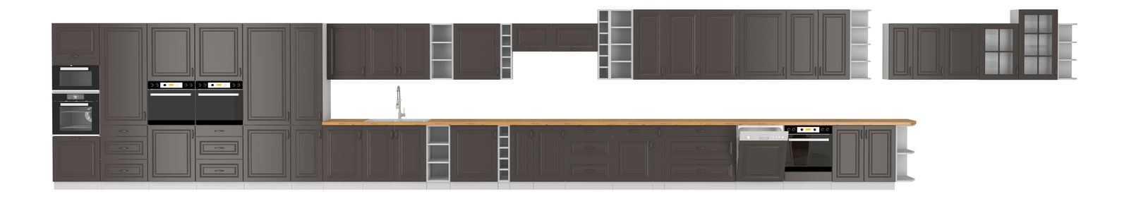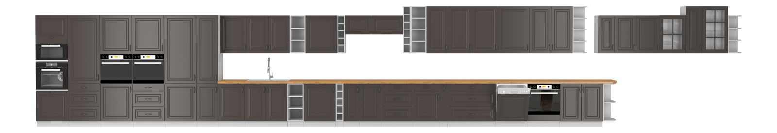 Dulap inferior pentru cuptor din gama de mobilier de bucătărie în stil modern. În ofertă sunt disponibile și alte variante de dulapuri și rafturi.
