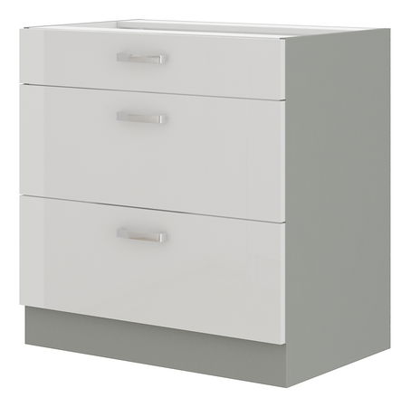 Dulap inferior de bucătărie Brunea 80 D 3S BB (gri + Alb lucios)