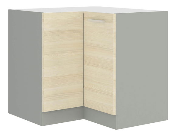 Dulap inferior de colț din gama de mobilier de bucătărie în stil modern. În ofertă sunt disponibile și alte variante de dulapuri și rafturi.