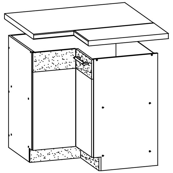 Corp de bucătărie inferior de colț, cu ușile cu lățimea de 90 de cm.