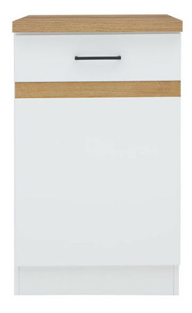 Dulap inferior de bucătărie Junona line D1D/50/82/L (Alb + Alb lucios + Stejar craft auriu)