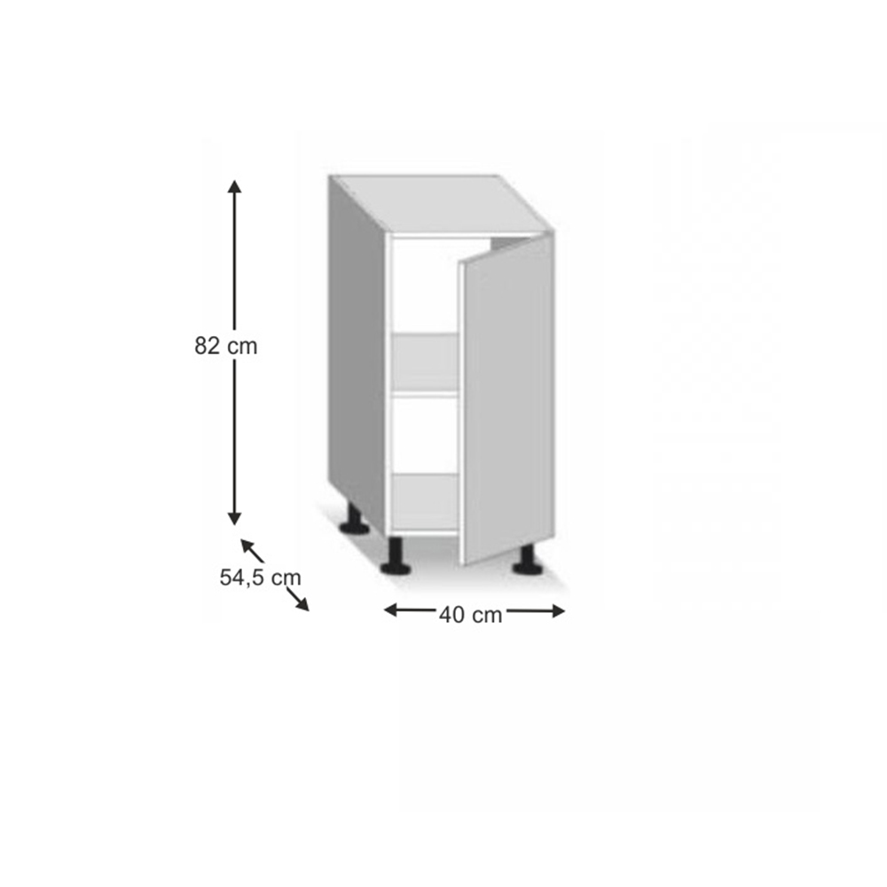 Corp inferior de bucătărie din seria Line. Dulapul are o singură ușă și un raft în interior. Este livrat împreună cu blatul de lucru și cu o bară inferioară.