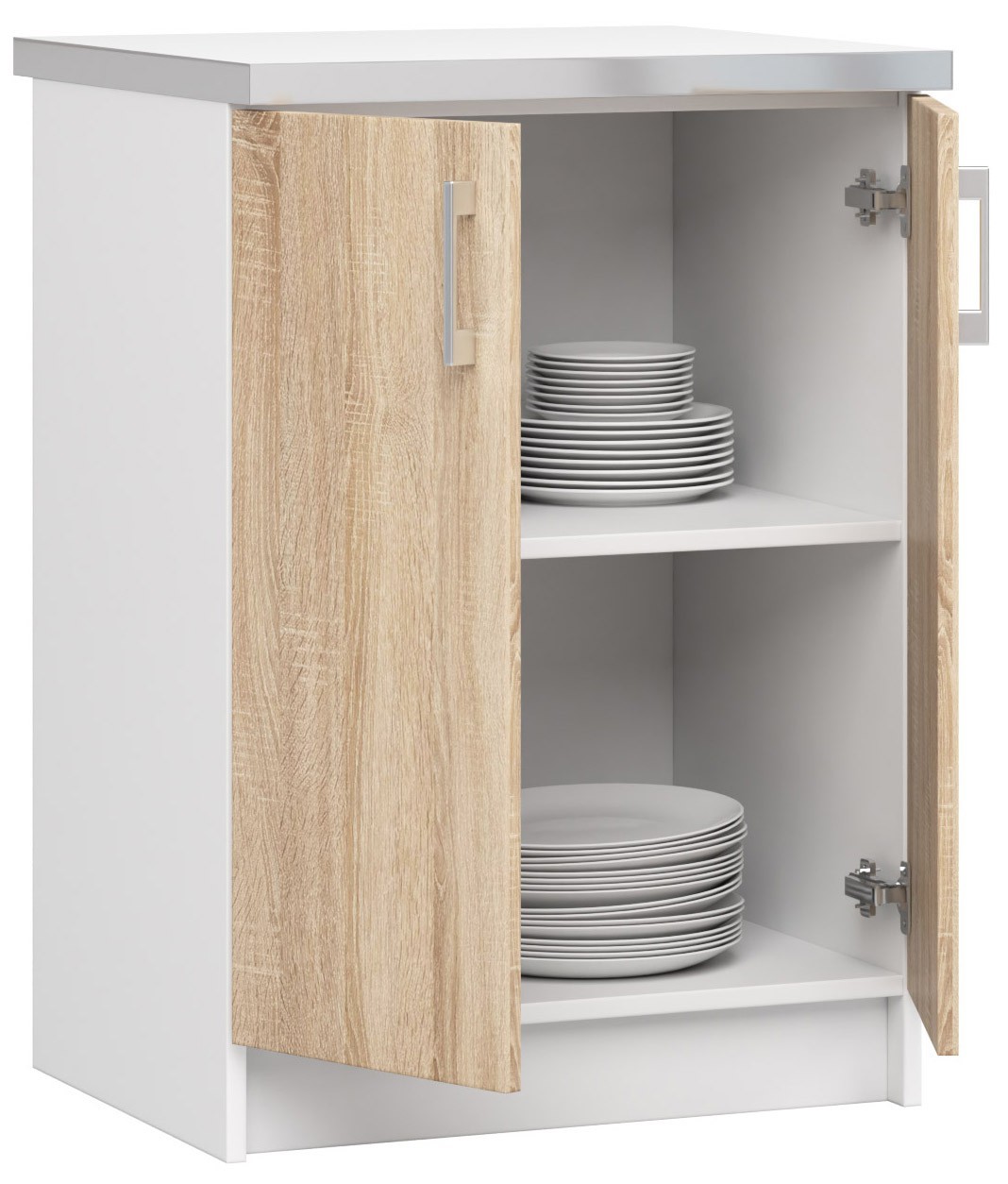 Dulap inferior de bucătărie Lula s60 (Alb mat + stejar sonoma)