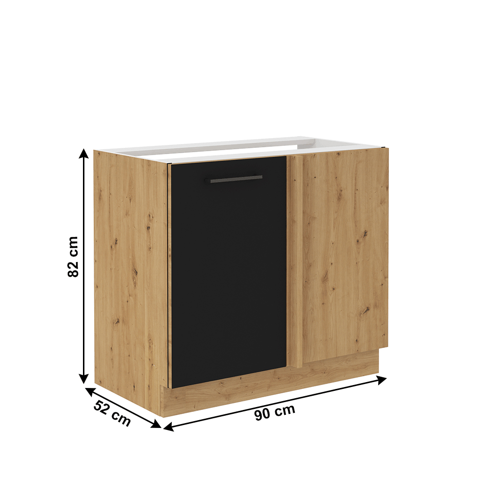 Dulap inferior de bucătărie Meriel 105 ND 1FFBB (negru + Stejar artisan)