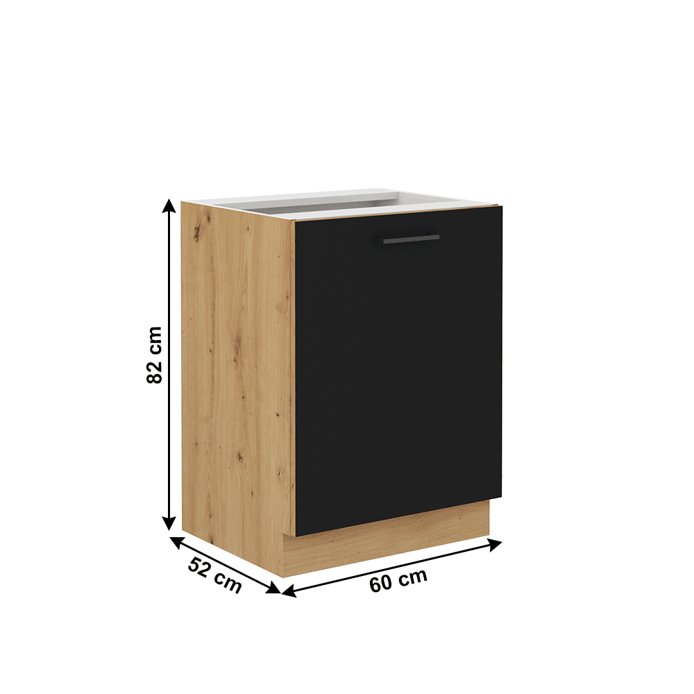 Dulap inferior de bucătărie Meriel 60 D 1F BB (negru + Stejar artisan)