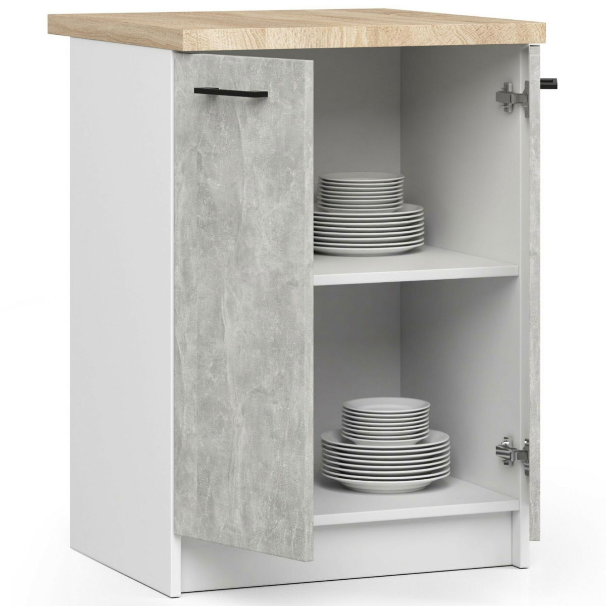 Dulap inferior de bucătărie Ozara S60 2D (alb + beton)