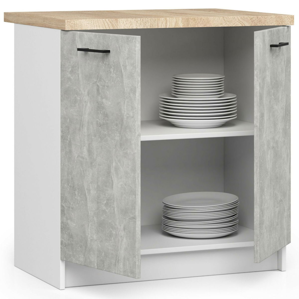 Dulap inferior de bucătărie Ozara S80 2D (alb + beton)