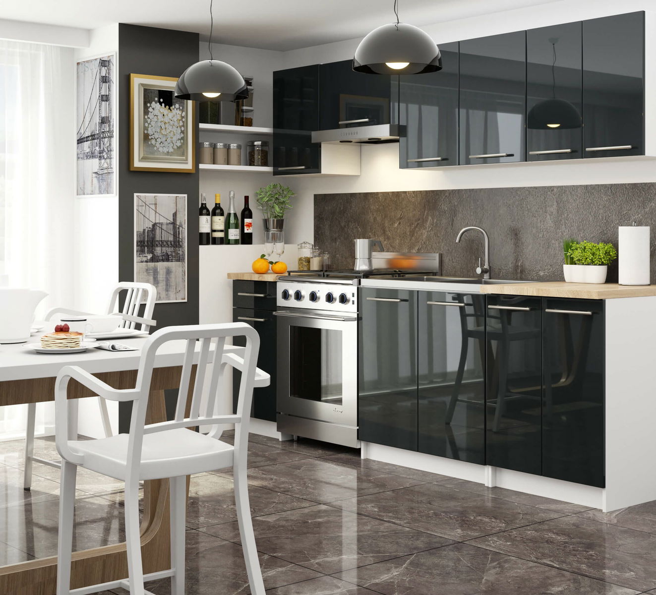 Dulap inferior de bucătărie Ozara S80 2D (alb + negru lucios)