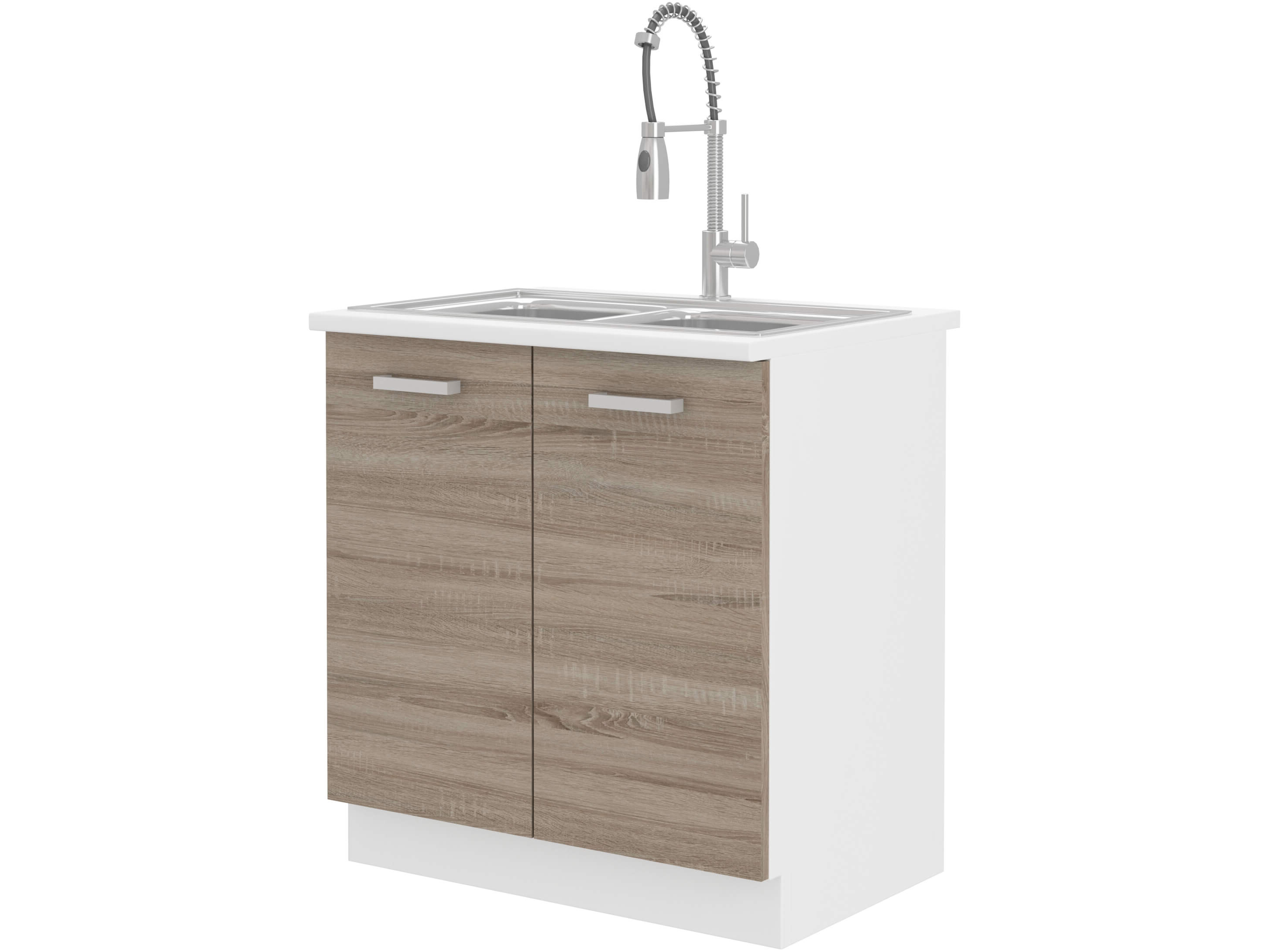 Dulap inferior de bucătărie pod drez Domton 80 ZL 2F ZB (Alb + Stejar sonoma truflă) *vânzare