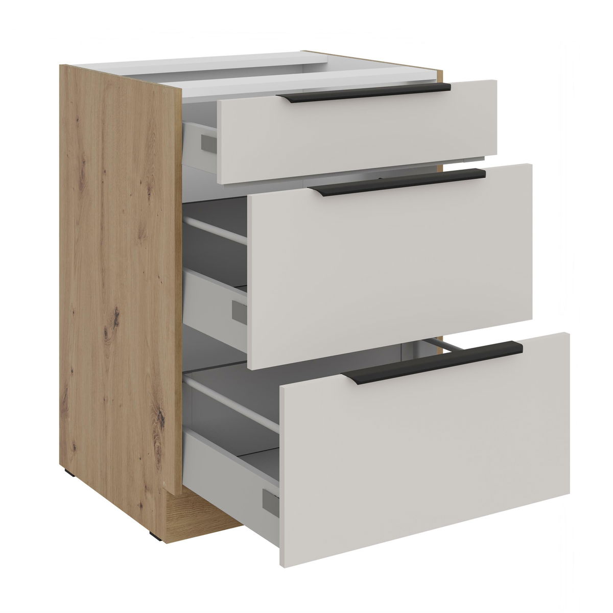 Dulap inferior de bucătărie Sayla 60 D 3S BB (cashmir + Stejar artisan)