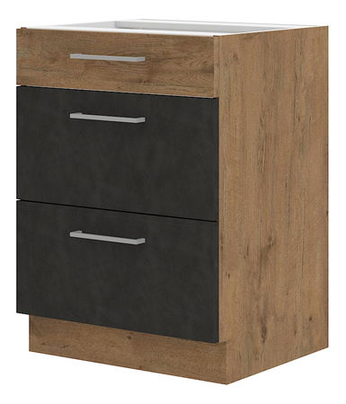 Dulap inferior de bucătărie Virion 60 D 3S BB (stejar lancelot + gri) *vânzare