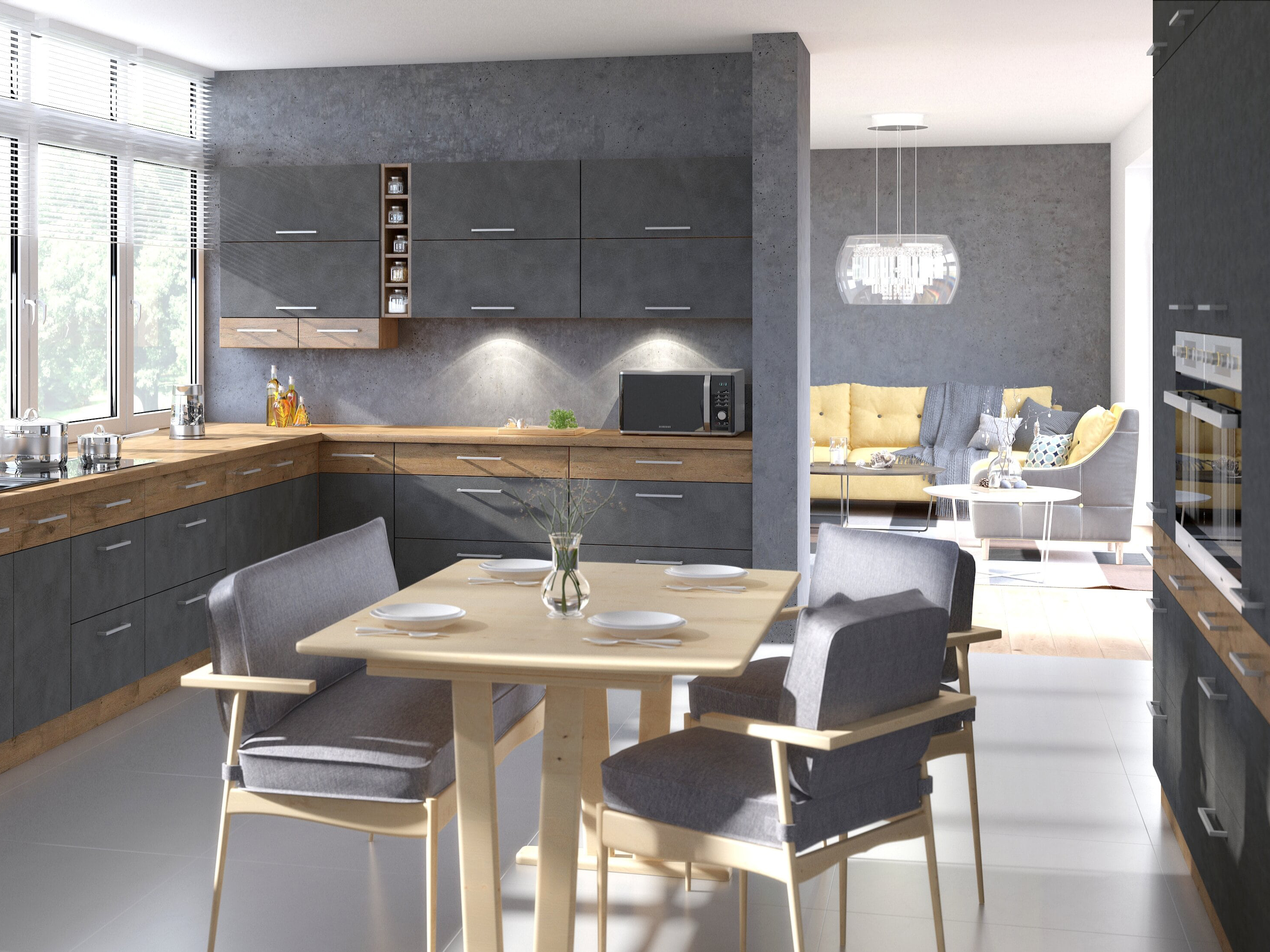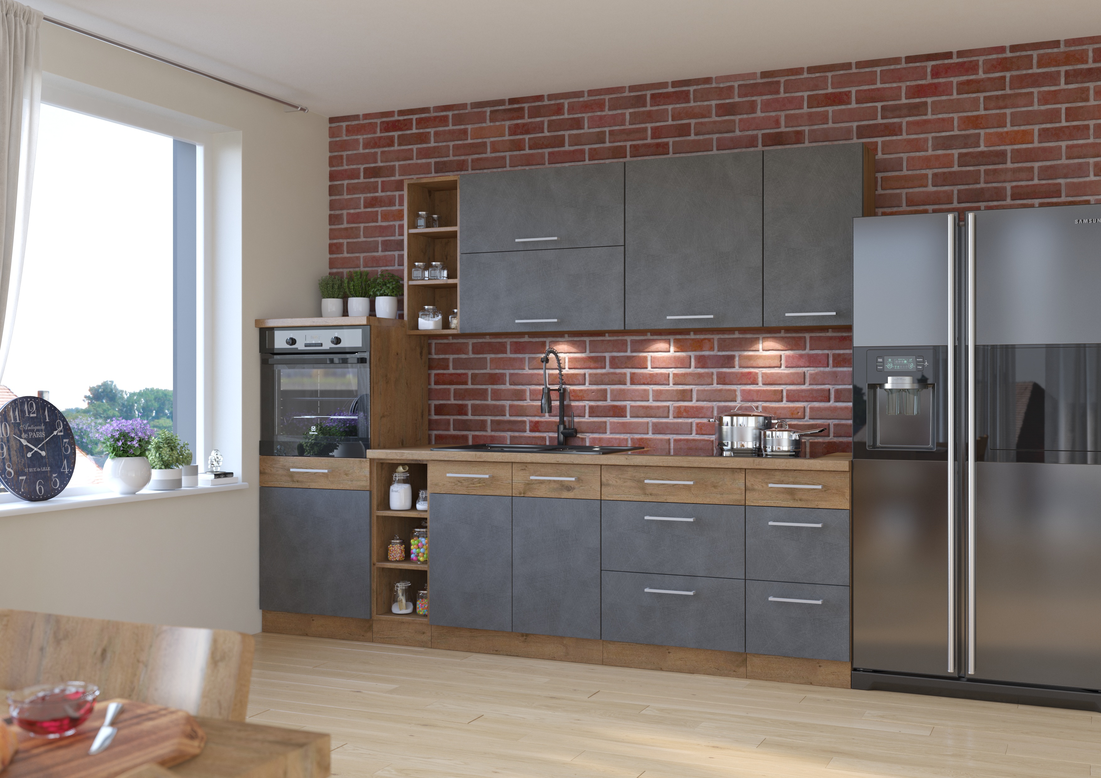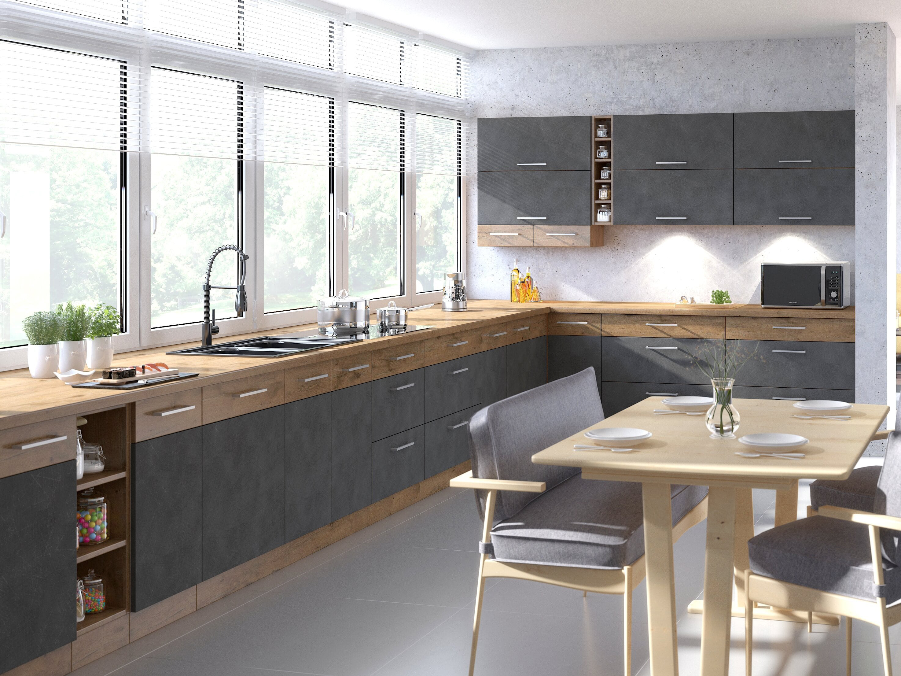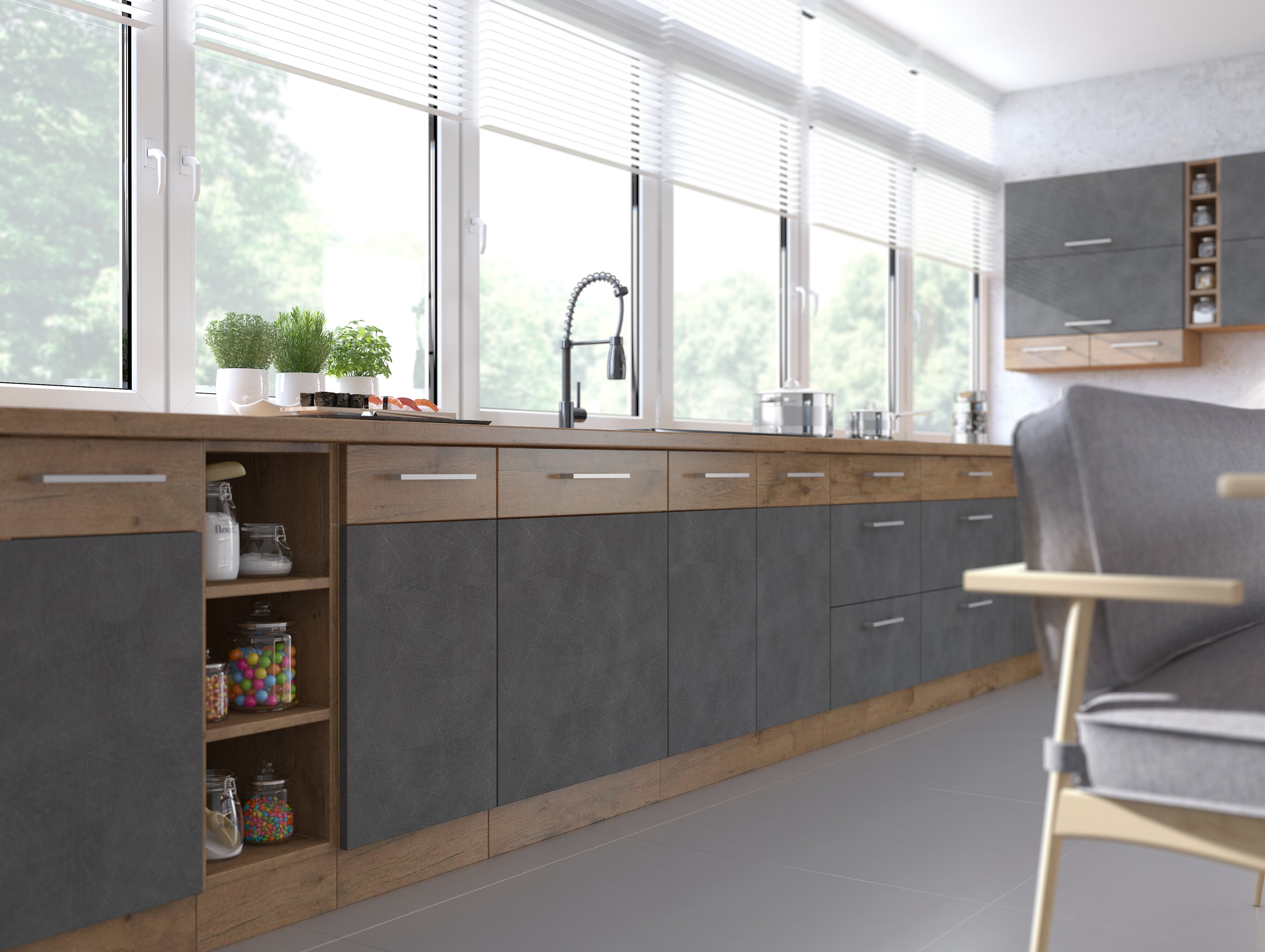 Dulap inferior cu trei sertare, mobilier de bucătărie din gama de mobilier în stil modern. În ofertă diferite versiuni de dulapuri și rafturi la alegere.