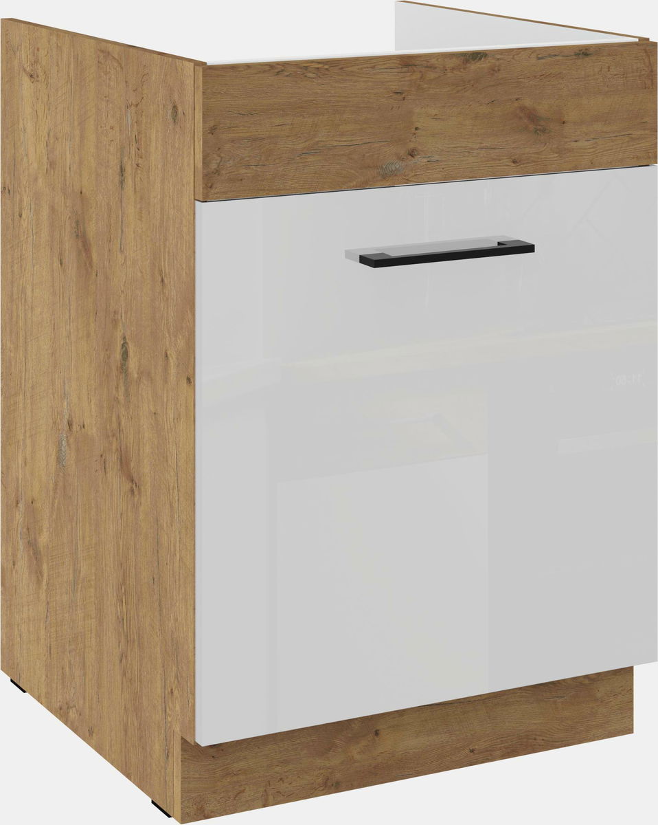 Dulap inferior de bucătărie Virion 60 ZL 1S BB (stejar lancelot + alb lucios)