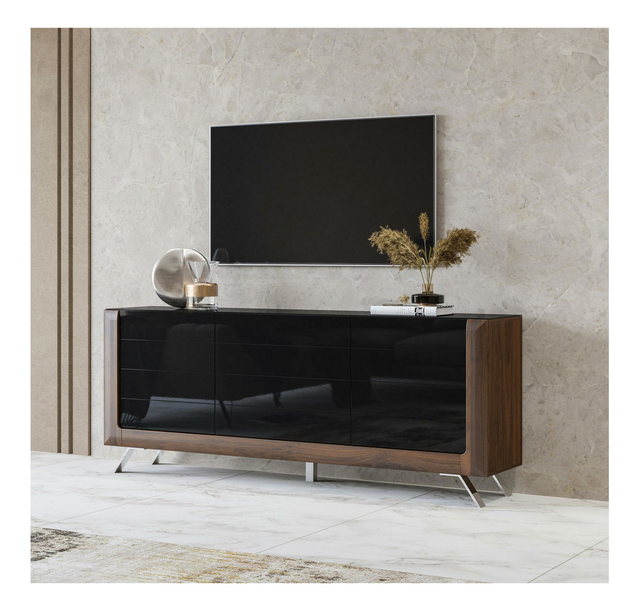 Dulap Kassie Typ 25 (negru lucios + nuc columbia)