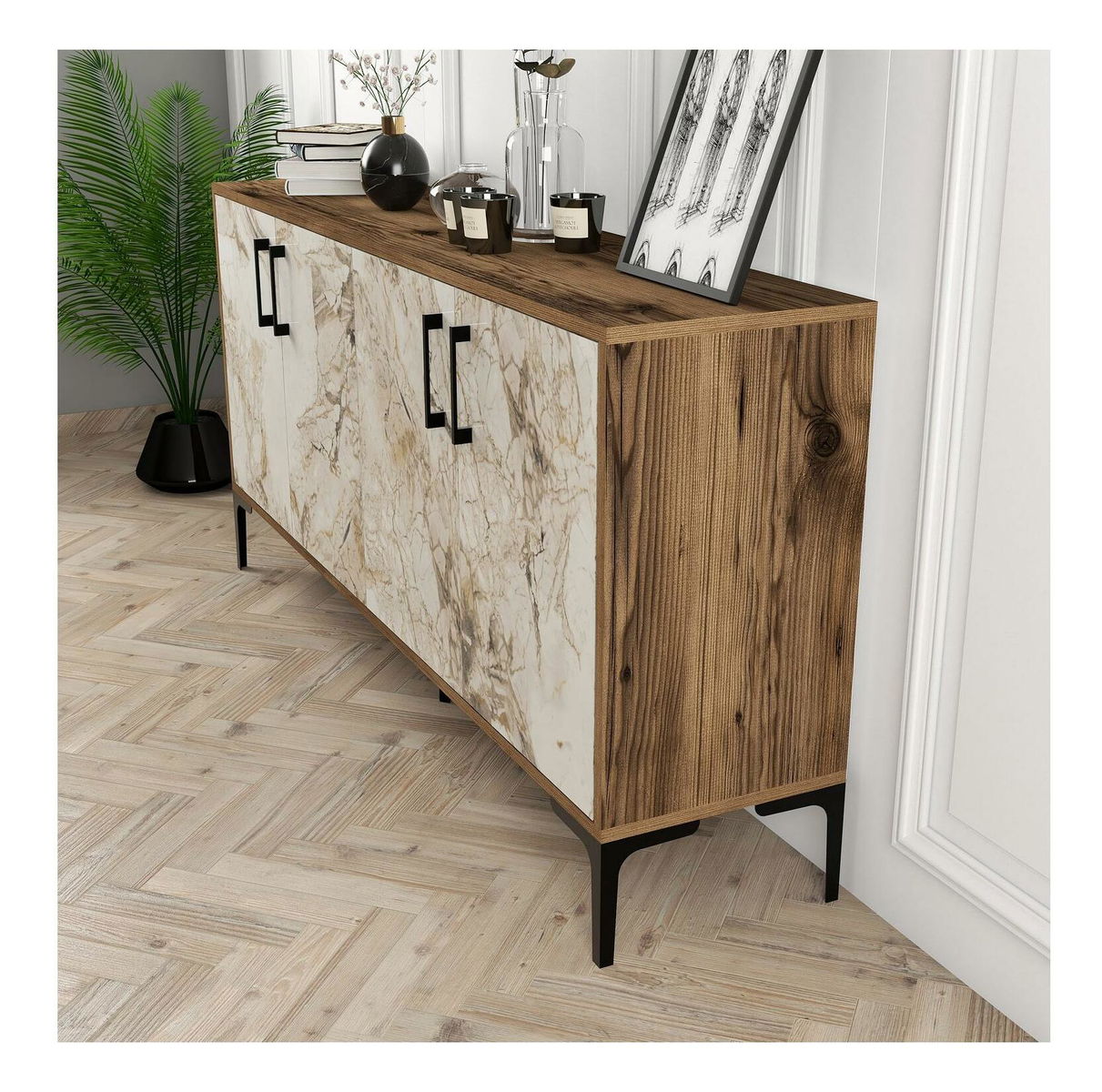 Dulap Kloe (Nuc + Marmură albă)
