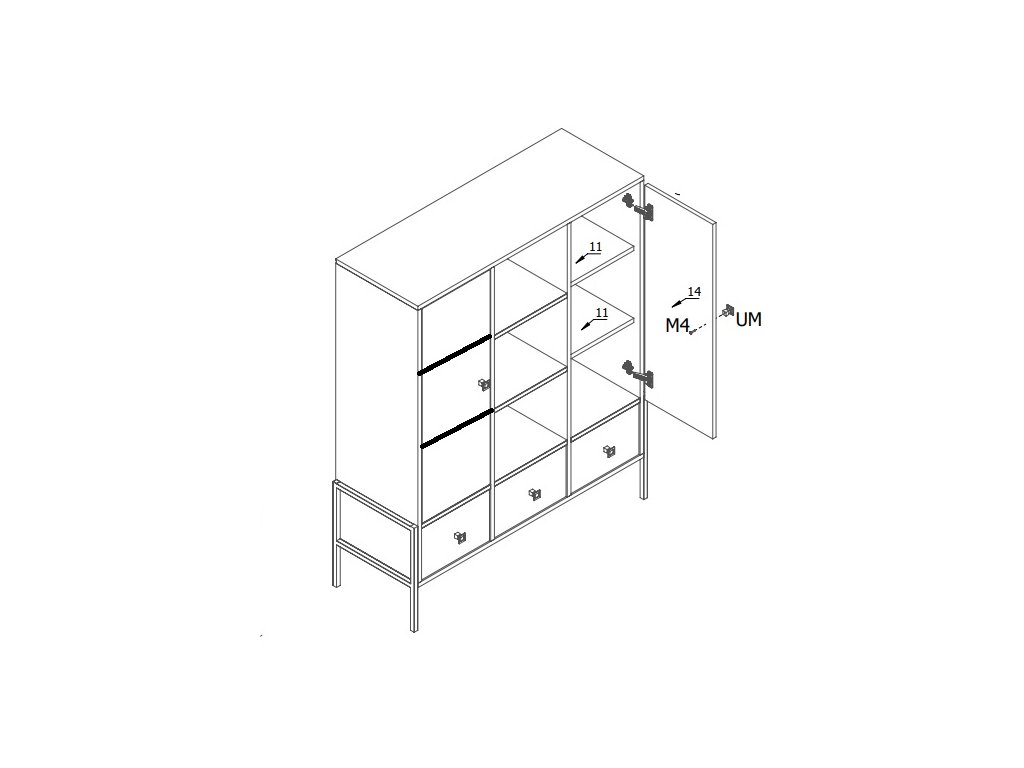 Dulap Luigi L3 (stejar artisan + Negru)
