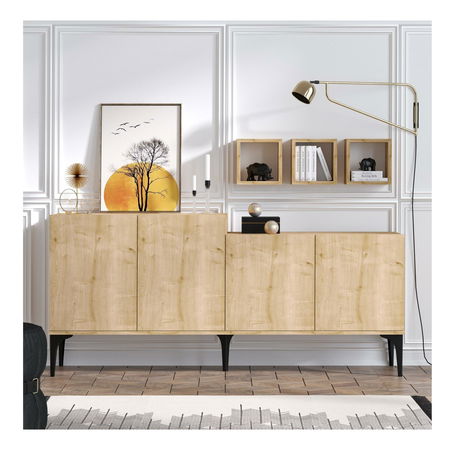 grosime: 18 mm, dimensiuni consolă: lățime: 180 cm, înălțime: 85 cm, adâncime: 40 cm, dimensiuni raft de perete: lățime: 20 cm, înălțime: 20 cm, adâncime: 15 cm