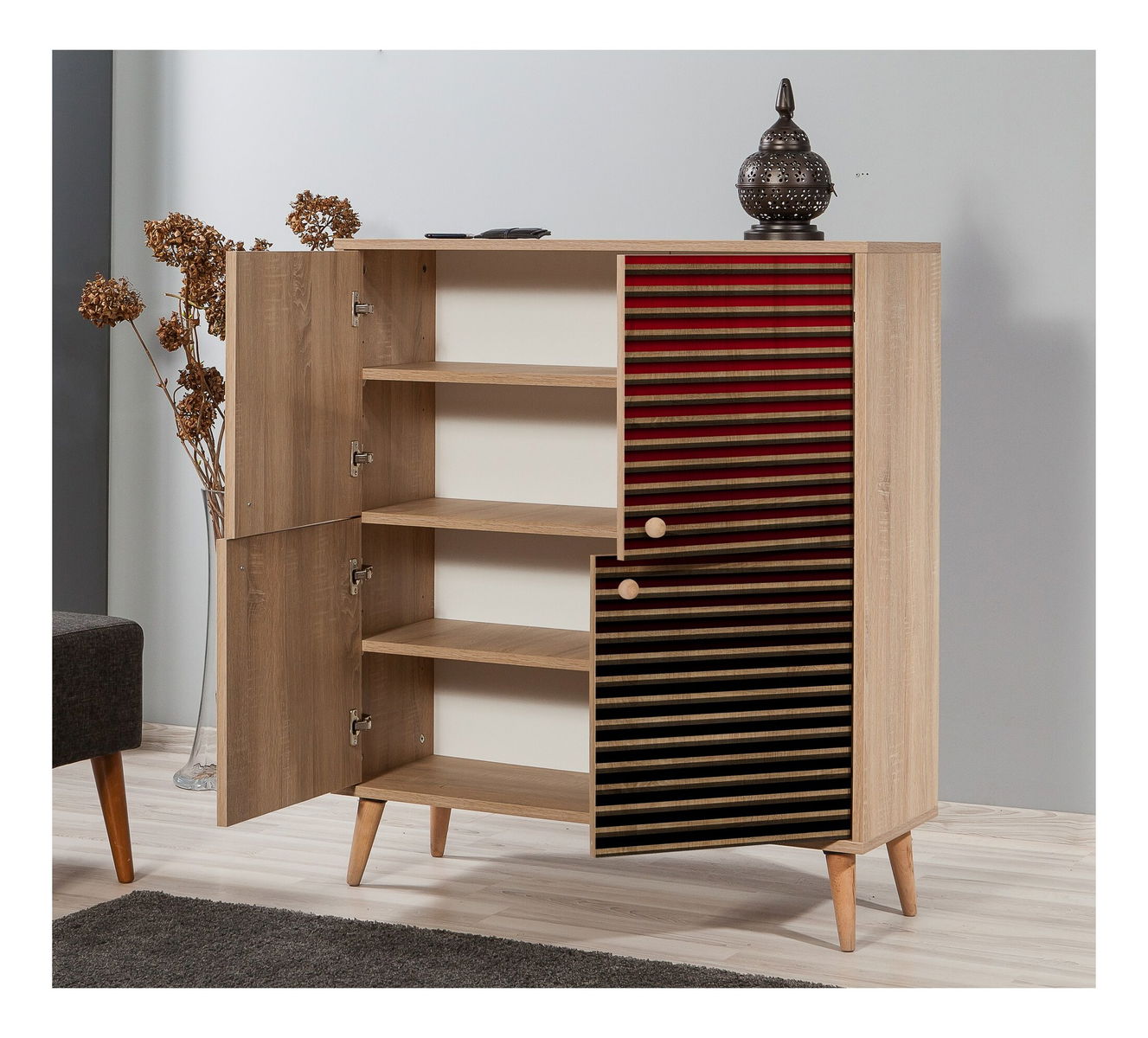 grosime: 18 mm, picioare crap, mânere metalice, strat UV, lățime: 95 cm, înălțime: 111 cm, adâncime: 36 cm, înălțime raft: 19,8 cm, înălțime picioare: 15 cm