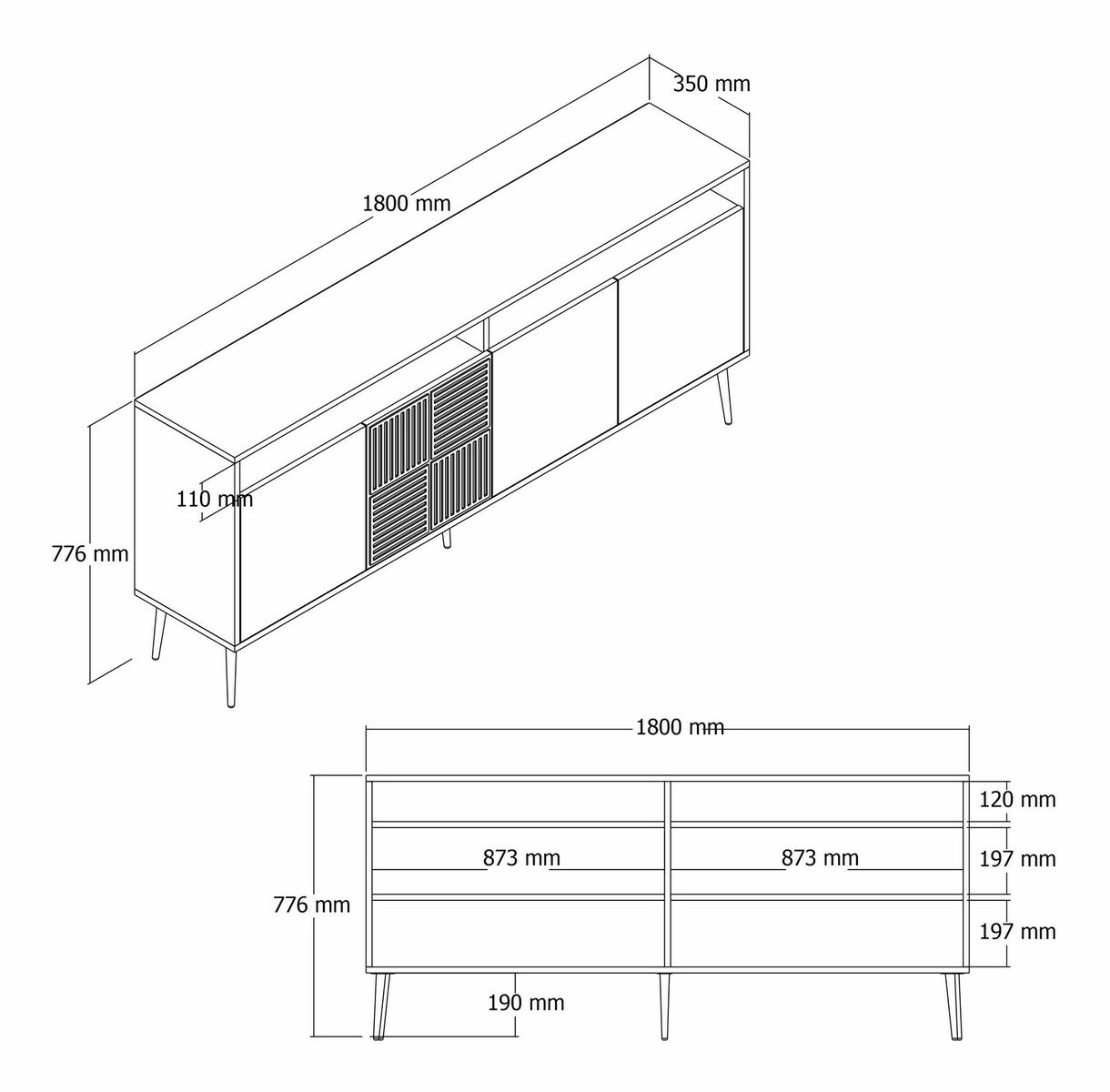 grosime: 18 mm, lățime: 180 cm, înălțime: 77 cm, adâncime: 35 cm