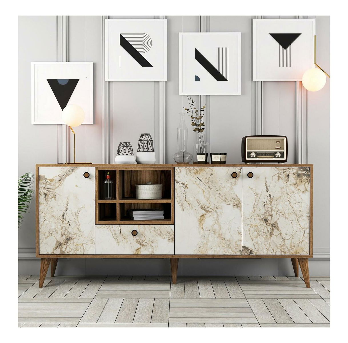- Dulap Nana (Marmură albă + Nuc)