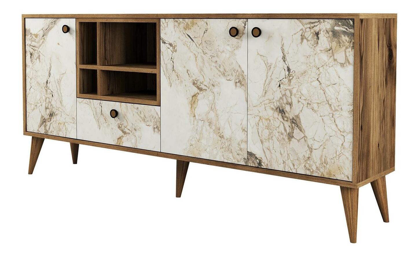 Dulap Nana (Marmură albă + Nuc)