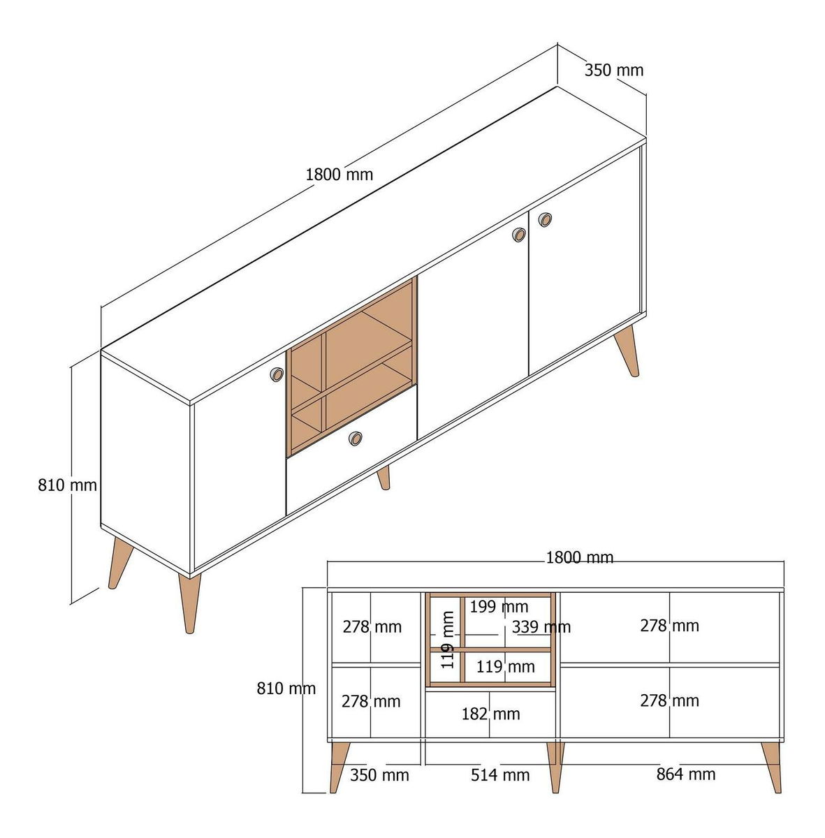 grosime: 18 mm, lățime: 180 cm, înălțime: 81 cm, adâncime: 35 cm