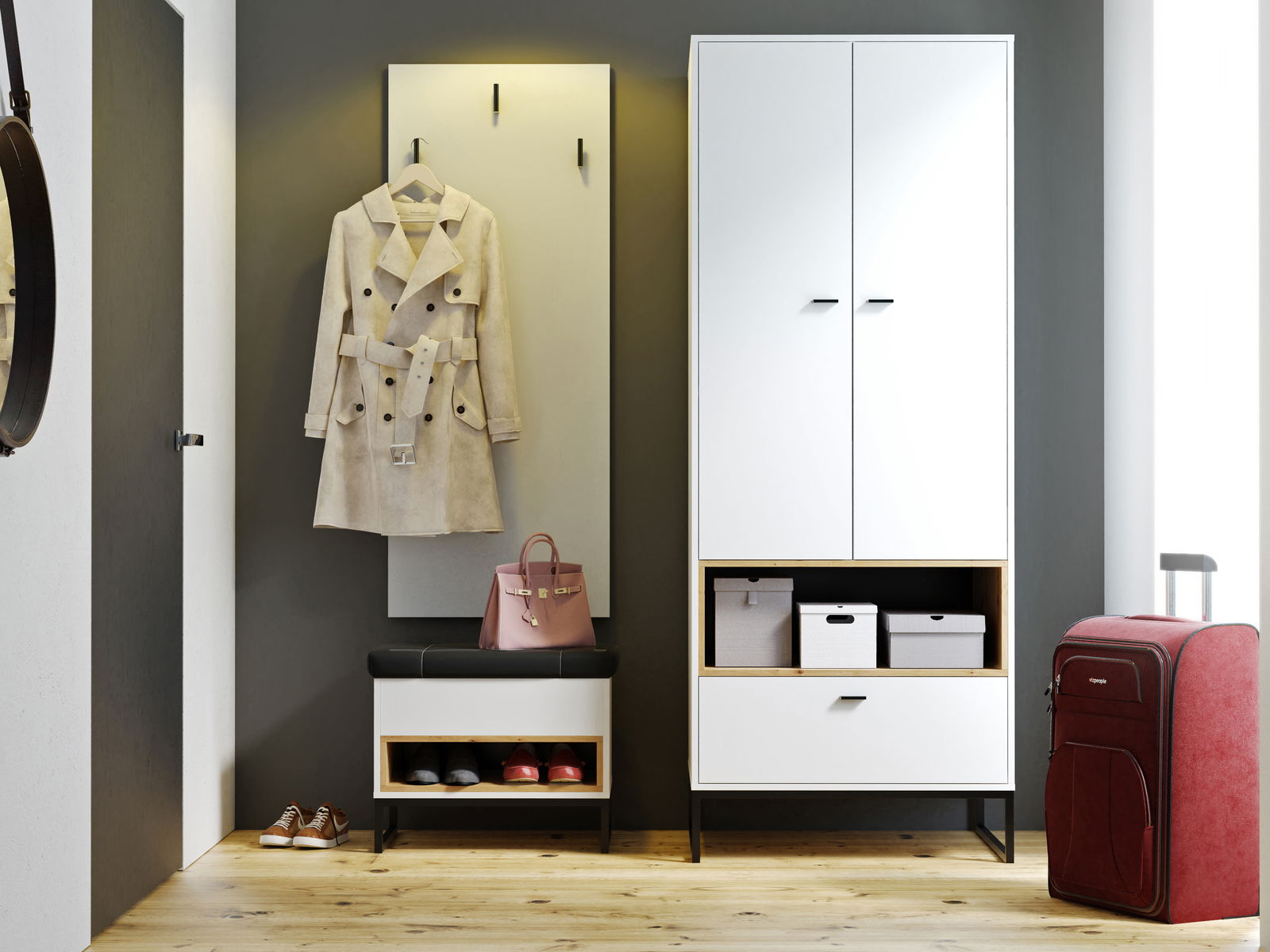 Dulap pantofi Oliver B (stejar artizanal + negru mat) *vânzare stoc