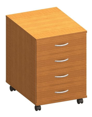 Dulap practic pe roți cu patru sertare, cu posibilitatea închiderii, este potrivit în fiecare birou și cameră de lucru. Sertarele dulapului au mânere metalice mai largi.