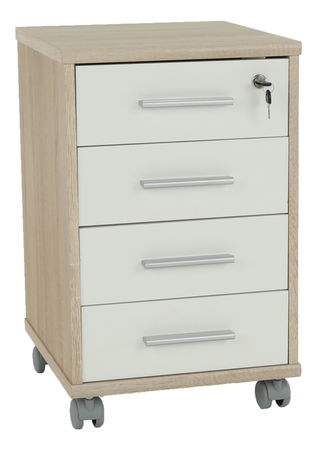 Dulap practic pe roți Jove cu patru sertare, potrivit pentru orice birou sau cameră de lucru. Dulapul se livrează pe versiunea color de stejar sonoma în combinație cu alb.