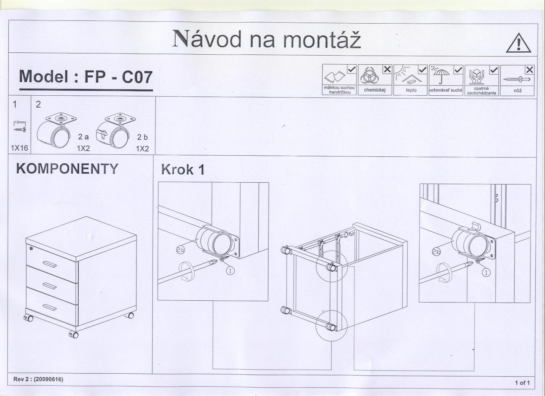 Dulap cu trei sertare pe roți, potrivită pentru a fi plasată sub birou. Sertarele se închid central cu cheie și sunt montate pe șine metalice.