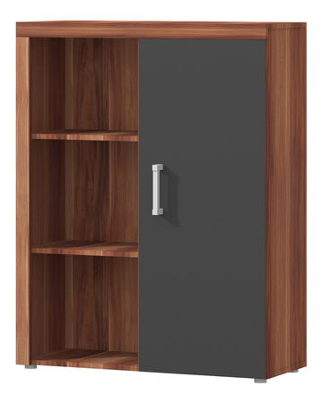 Un dulap mai mic, practic și cu un design plăcut unde domină culoarea lemnului de prun. Ușa din față are un design de grafit. Partea din stânga are rafturi deschise, unde puteți plasa cărți și decorațiuni. În partea dreaptă este ușa. Dulapul se potrivește în camerele de zi moderne, în sufragerii sau dormitor.