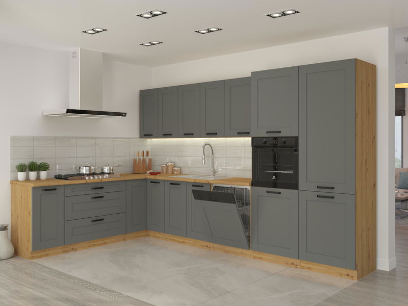 Ați visat vreodată la o bucătărie rustică cu elemente moderne care să fie fabricată la comandă după dorințele voastre? Alegeți setul de bucătărie cu elementele potrivite din seria Sheila.
