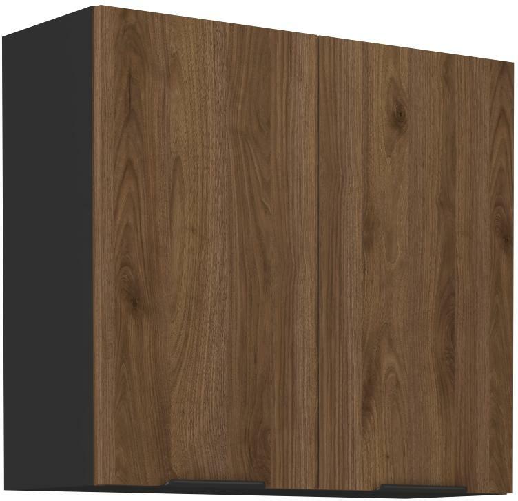 Dulap superior de bucătărie Manana 80 G 72 2F (Cadru: negru mat + front: nuc okapi)