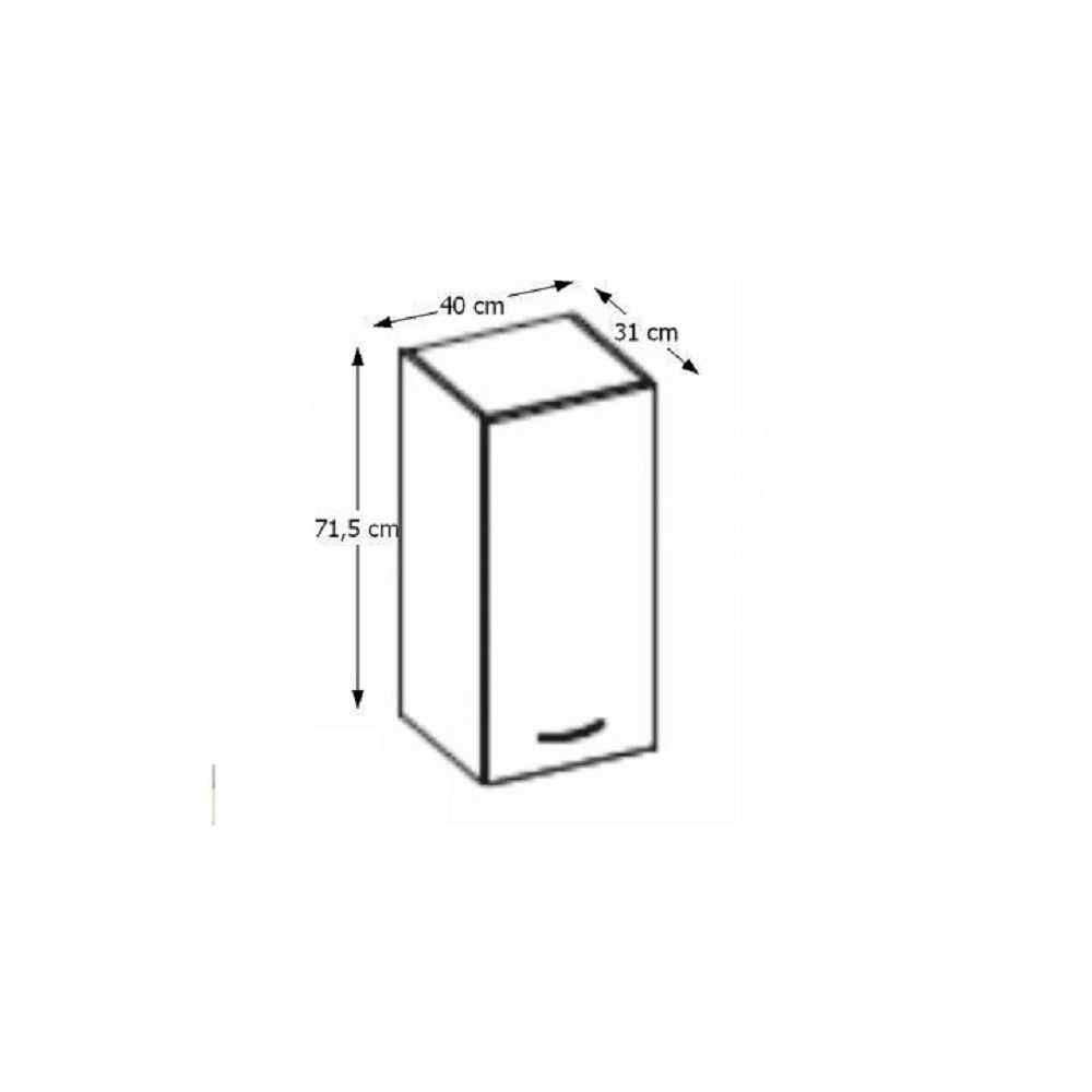 Corp superior de bucătărie cu o lățime de 60 cm și înălțime de 40 cm, cu o ușă care se deschide prin pliere. Închiderea ușii este realizată cu ajutorul unui sistem modern de închidere silențios, cu mânere din metal. Materialul folosit este MDF, corpul dulapului este gri, ușa este acoperită cu roșu sau crem lucios.