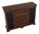 Comoda elegantă masivă Kraz cu uși vitrate, trei sertare și o parte Rabatabilă. Stilul rustic al comodei este alcătuit din picioare decorative și șine decorative. Sertarele și ușa au mânere metalice. Aceasta poate fi plasată în sufragerii în sălile de mese și în sălile de lucru. Comoda este într-o frumoasă versiune de culoare închisă King Samoa.