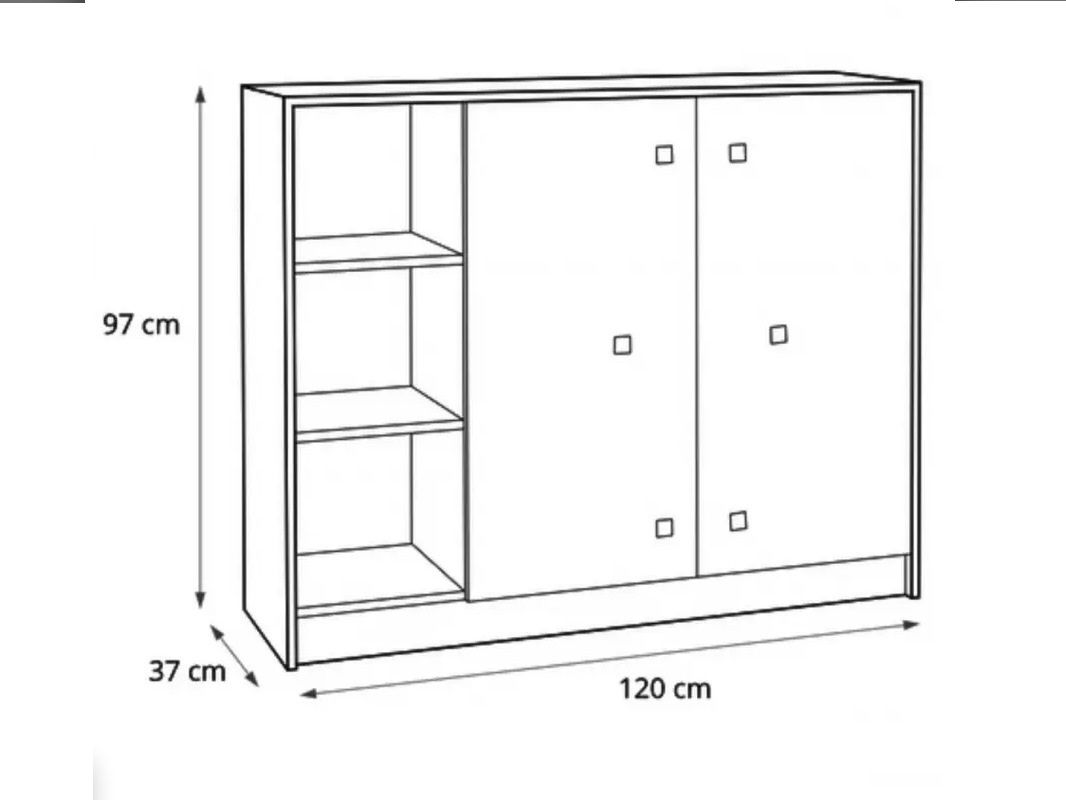 Dulap pentru depozitarea mărunțișurilor de orice fel. Este potrivit în special pentru studenți și adolescenți. În stânga există trei rafturi deschise. Dulapul are o ușă cu mâner din plastic. Dulapul are picioarele din plastic.