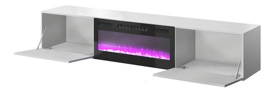 Dulap TV de perete cu șemineu Kedy 200 (Alb + lucios Alb)