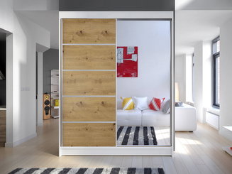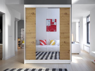 Dulap de haine cu uși glisante Gantera 1 B (Stejar sonoma) (cu oglindă)