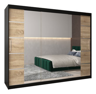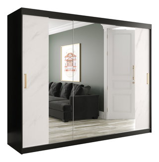 Dulap de haine cu oglindă 250 cm Riana Wa 2 250 (alb + negru)