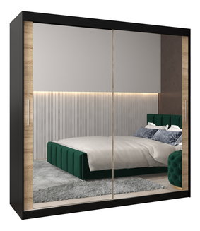 Dulap de haine cu uși glisante Gantera 2 B (Negru) (cu oglindă)