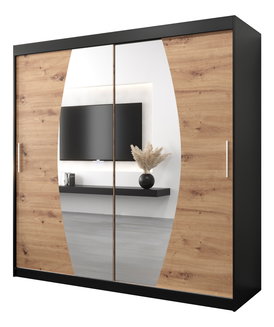 Dulap de haine 180 cm Ladonna (Stejar artisan + Negru mat)